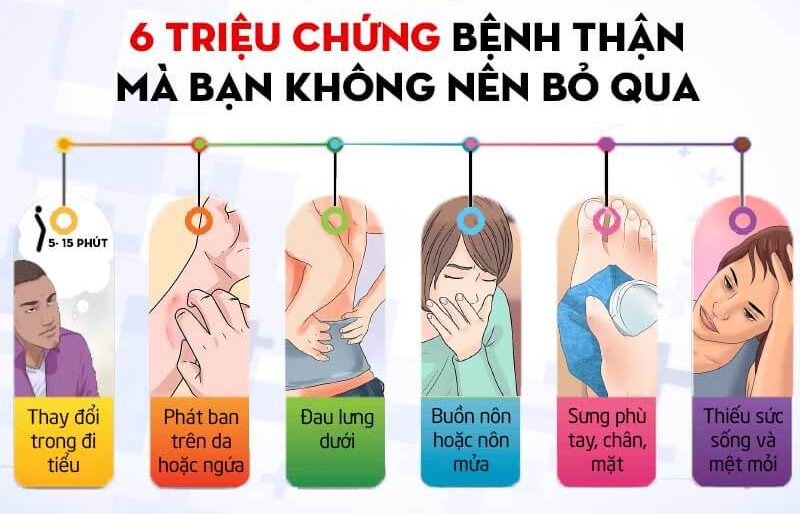 - Các triệu chứng của bạn sẽ phụ thuộc vào mức độ suy giảm chức năng thận của bạn, mức độ mất chức năng thận nhanh hay chậm và lý do dẫn đến suy thận của bạn. Các triệu chứng có thể bao gồm: